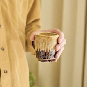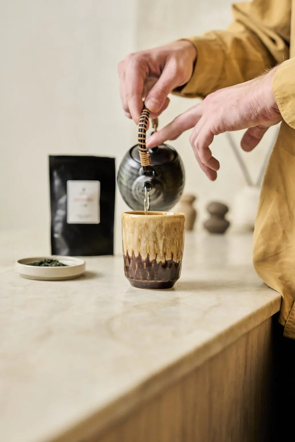 Hrnek Kanpai je unikátní nádoba na pití sypaného čaje. Jeho barvy evokují sladké asociace – med, karamel, čokoláda. Jedinečný design nádoby zpříjemní každodenní chvíle s vaším oblíbeným čajem. Hrnek Kanpai navrhlo a ručně vyrobilo ukrajinské studio Pokutska Ceramics. Kanpai v japonštině znamená „na zdraví“, proto si připijte lahodným nálevem.