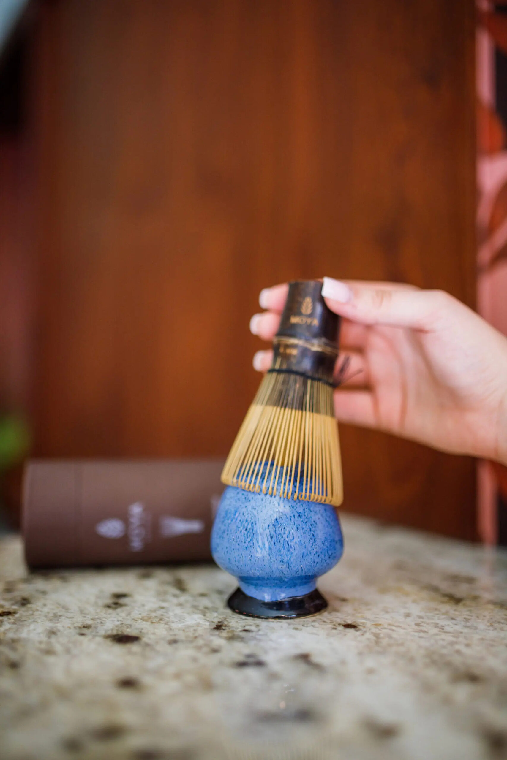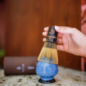 Nezbytná součást vybavení pro znalce přípravy čajů. Tento držák taro pomáhá bambusové metličce rychleji vysychat po použití a udržovat svůj tvar a odolnost, což v konečném důsledku zvýší jeho životnost. Držák na metličku (chasen) taro, kdysi čistě prvek japonského tradičního čajového obřadu, se dnes stal praktickým nástrojem, který patří do kuchyně každého vášnivého pijáka matcha. Bambusová metlička (Chasen) se prodává samostatně.